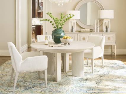 | Product Description: | The Estrella dining chairs feature a fully upholstered seat and back, with graceful tapered legs. Standard in an indoor performance fabric 2349-11, they are also available in custom fabrics or leather. |